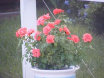 I am not much of a gardener. In fact I don’t like to garden. I have two rose bushes on our back patio. Roses are my favorite flower. When the coral bush first started, I was surprised by how many blossoms there were. The bush produced two clumps of three and four flowers. It was beautiful. I was so proud of it (the fact I hadn’t killed it yet).